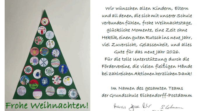 Am 15.12.2025 stimmten sich die Kinder der Eichendorffschule mit einem Adventssingen auf das bevorstehende Weihnachtsfest und die Feiertage ein. Sebastian Lohmann begleitete den Gesang der Kinder mit der Gitarre und für ein lautes Mitsingen sorgten [...] -