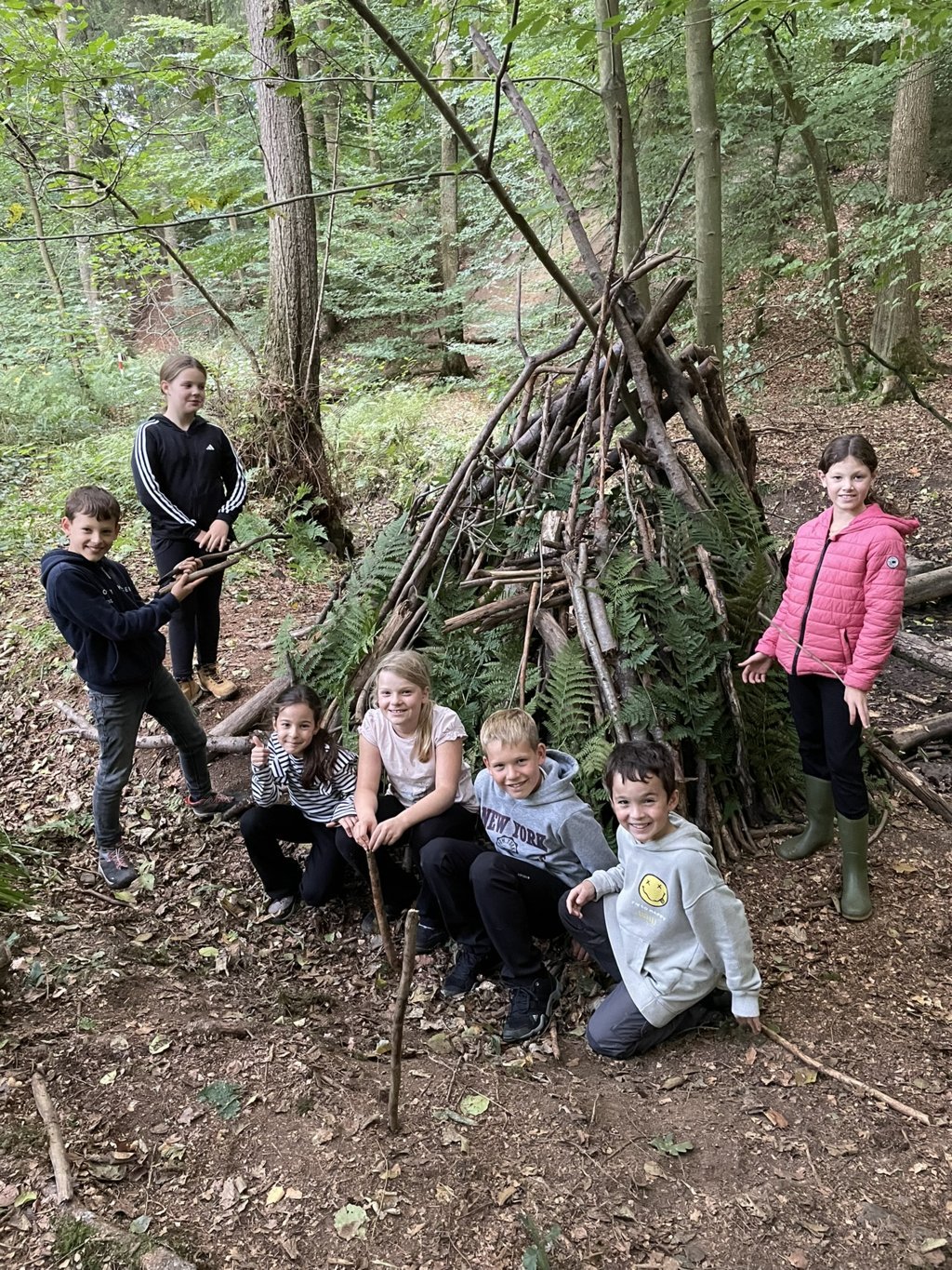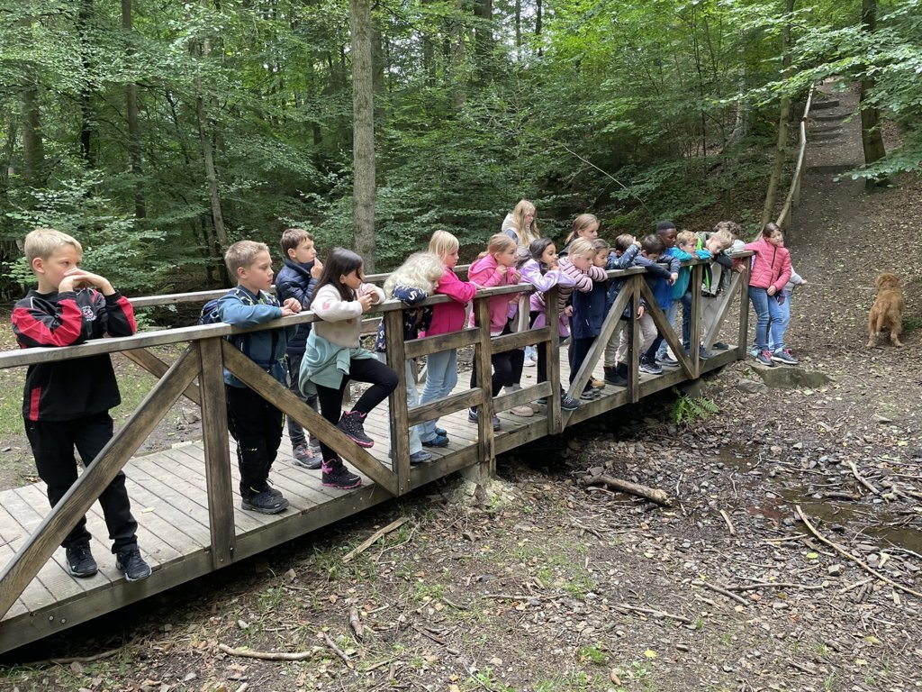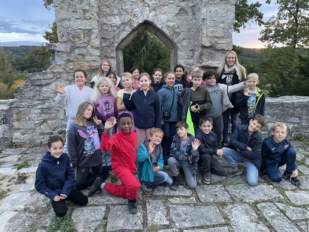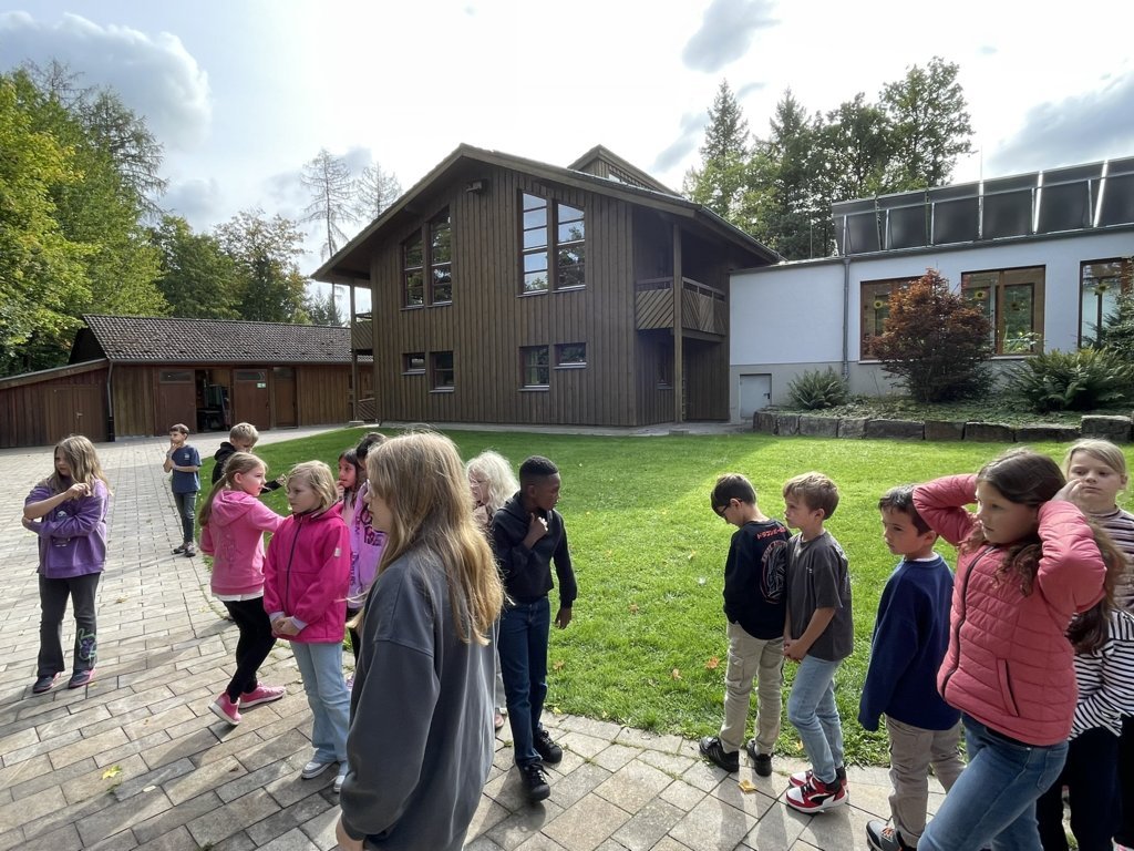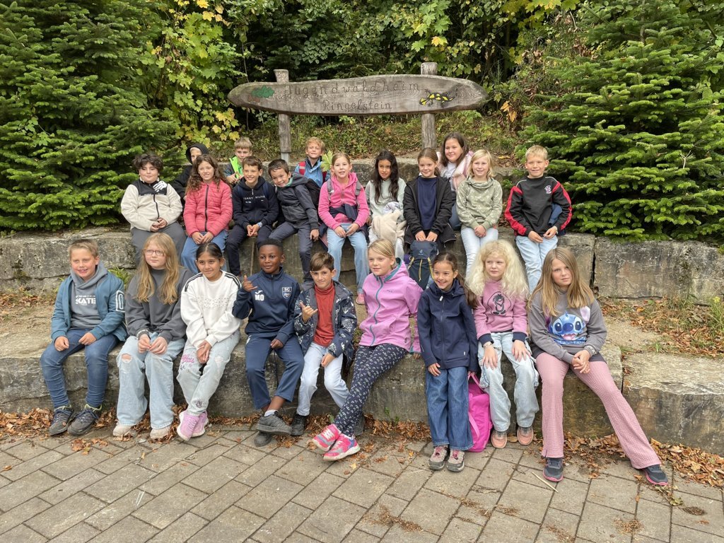 Vom 22. – 26.09.2025 ging es für die Kinder der Klasse 4b mit ihrer Klassenlehrerin Marion Bremke und Schulleiter Marcus Janssen-Müller für eine Woche in das Jugendwaldheim Ringelstein in der nähe von Büren.