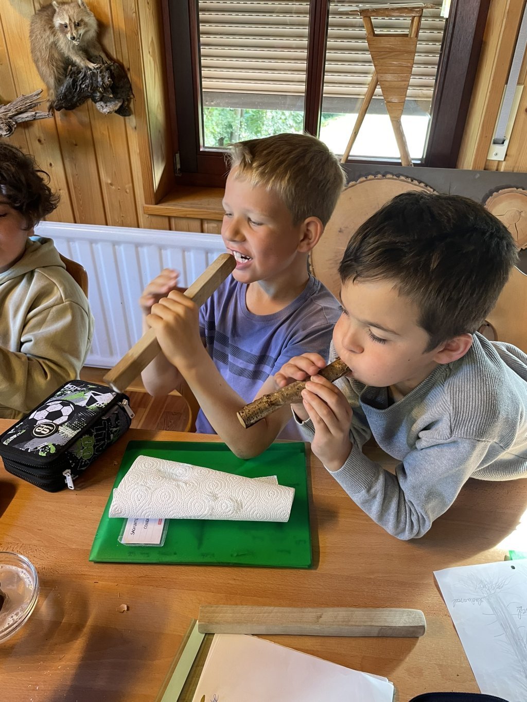 Nach Ankunft und Begrüßung durch den Förster Stefan Nolte und seinen Labradoodle Pepe wurden erst einmal die Zimmer bezogen. Die Betten mussten mit Bettwäsche bezogen und die Koffer ausgepackt werden. Anschließend gab es schon Mittagessen.