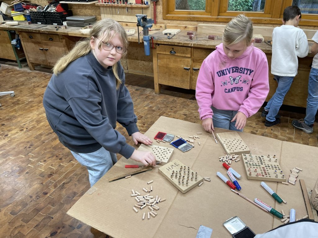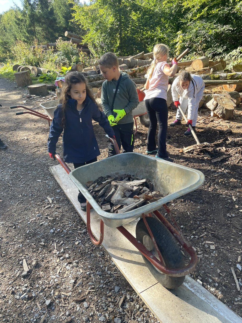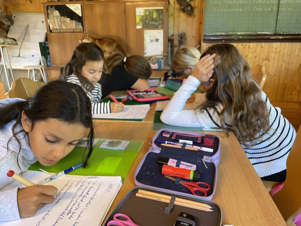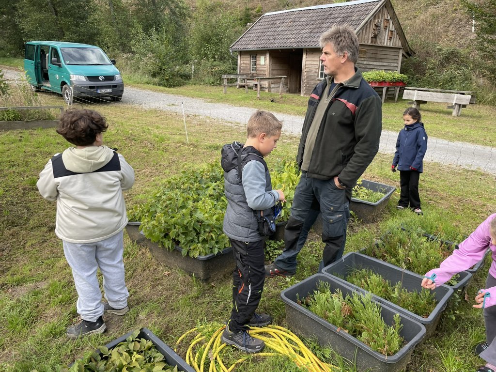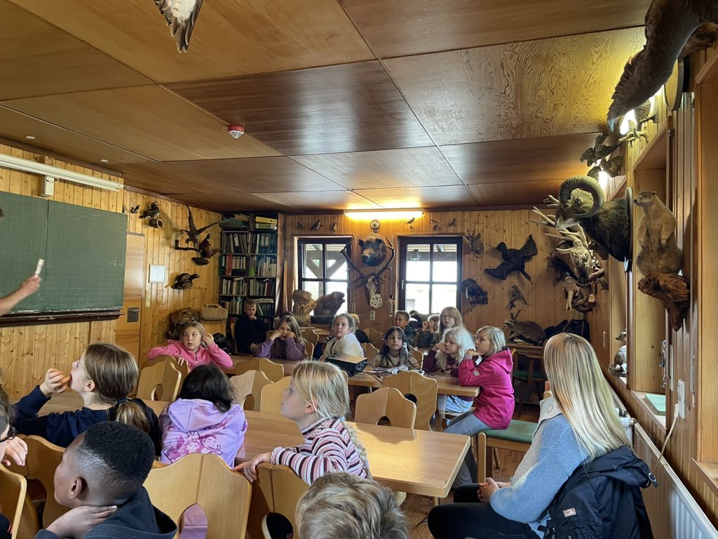 Danach wurde das Gelände des Jugendwaldheims erkundet. Eine Woche lang durften die Kinder Waldarbeiten erledigen, in einer Holzwerkstatt arbeiten, eine Waldrallye erleben, beim Heizen helfen und auf einer Streuobstwiese Obst pflücken. Das Wetter spielte fast durchgängig mit und trotz wiederkehrender Anflüge von Heimweh musste kein Kind vorzeitig abgeholt werden. Alle Kinder konnten ihren Eltern nach der Fahrt wohlbehalten wieder übergeben werden. Es war ein tolles Erlebnis!