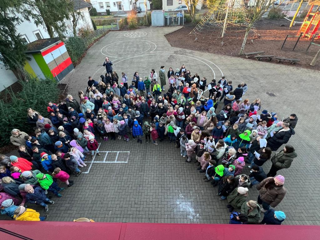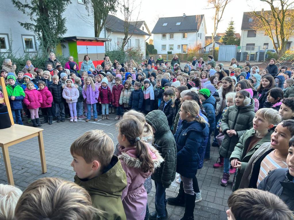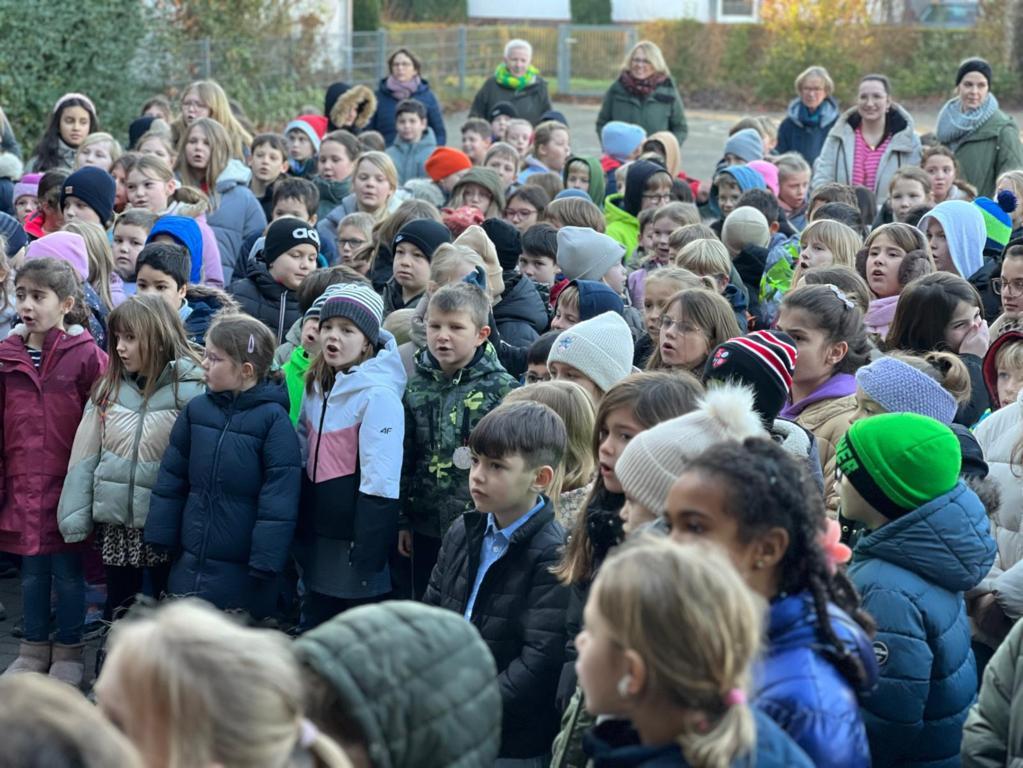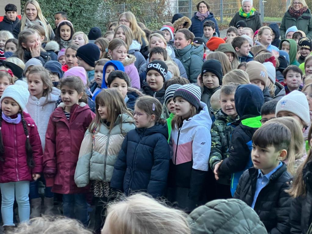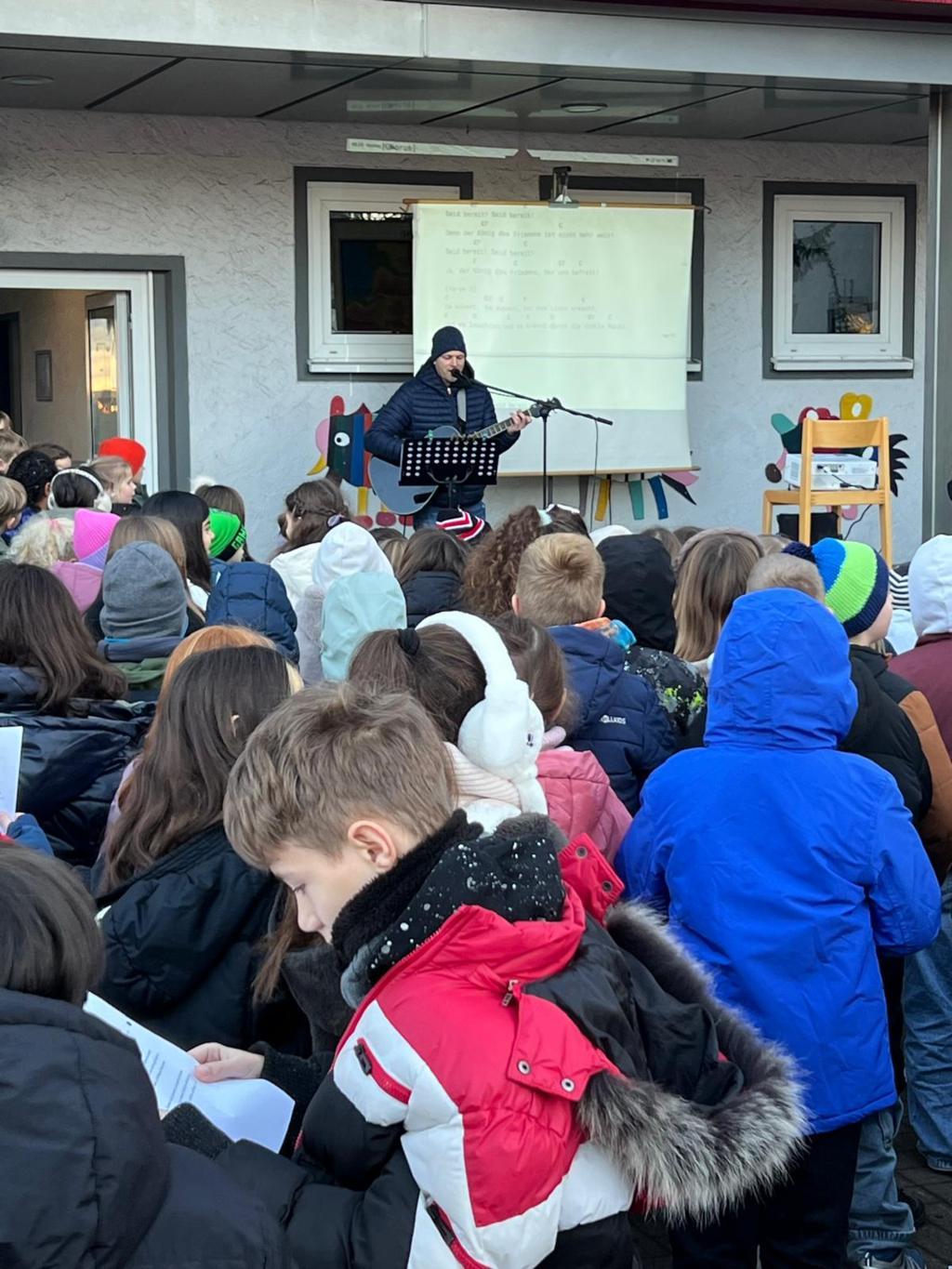Am 15.12.2025 stimmten sich die Kinder der Eichendorffschule mit einem Adventssingen auf das bevorstehende Weihnachtsfest und die Feiertage ein. Sebastian Lohmann begleitete den Gesang der Kinder mit der Gitarre und für ein lautes Mitsingen sorgten die Liedertexte, die per Beamer auf eine Leinwand projiziert wurden.